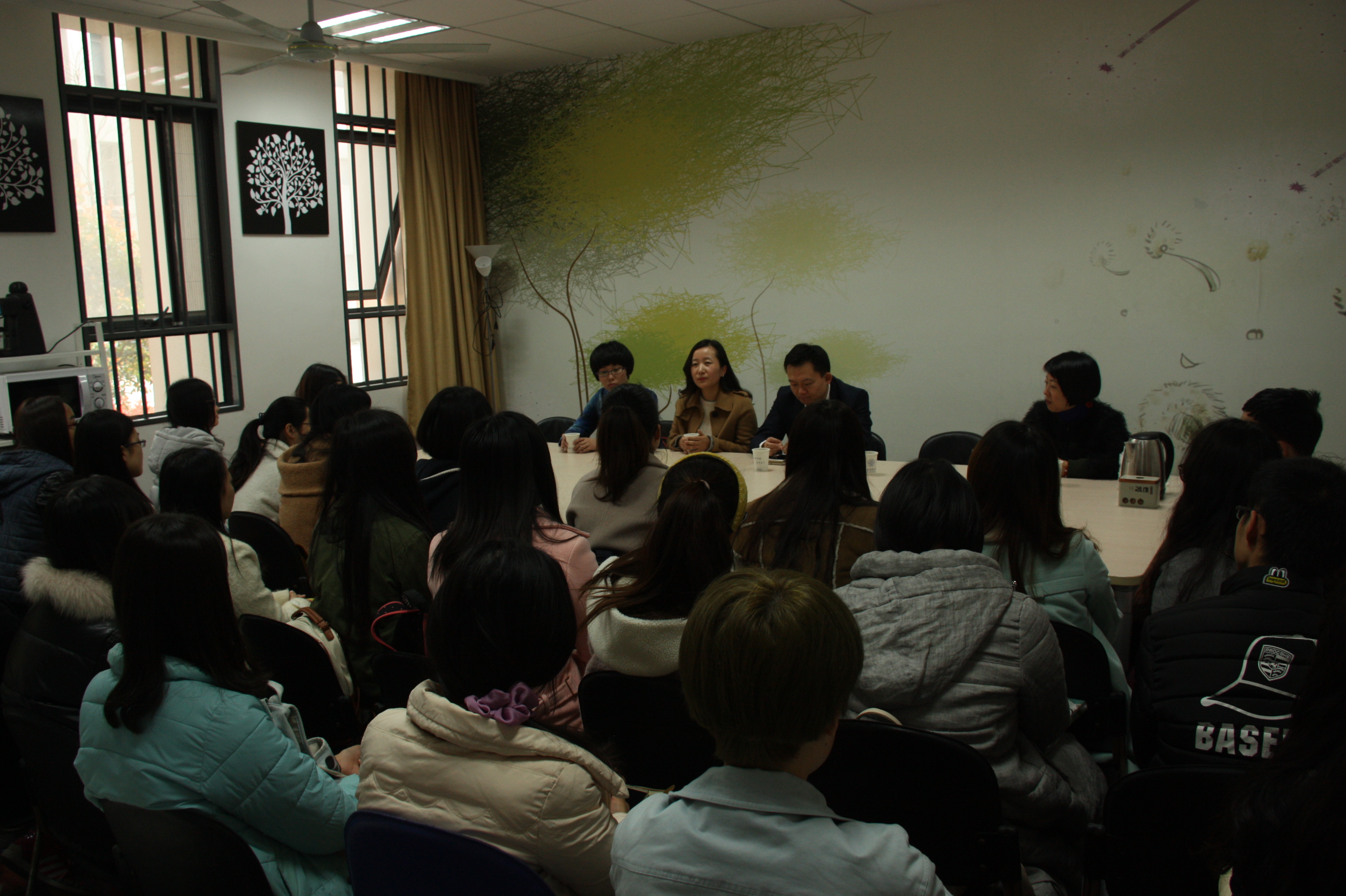3月25日下午,百家乐官网 98、99级法学专业迟梦洁、井永敏、吴俊、於亮等院友返回学院参加“凤回巢”校友职场说活动,并与学院领导、法律系教师及学生代表座谈,共话学院发展。