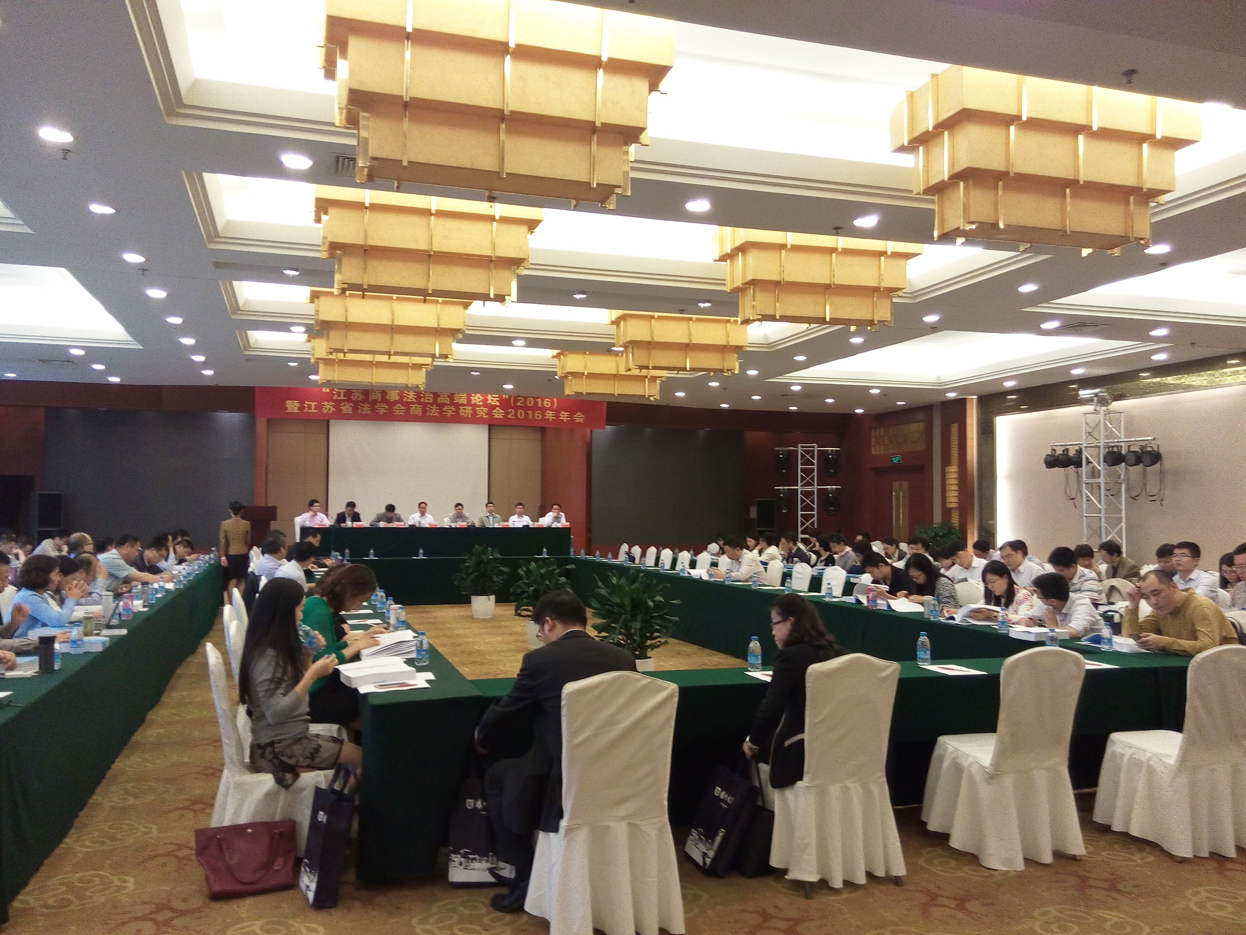 6月3日,“江苏商事法治高端论坛”(2016)暨江苏省法学会商法研究会2016年年会在扬州召开。会议开幕式由百家乐官网 院长、江苏省法学会商法学研究会副会长兼秘书长王建文教授主持。江苏省法学会副会长刘克希(正厅长级)出席会议并代表省法学会讲话。扬州大学副校长陈亚平,江苏省法学会商法学研究会会长、南京大学教授范健分别致辞。出席会议且担任会议单元主持人的江苏省法学会商法学研究会副会长有:江苏省人大常委会法工委副主任王腊生(正厅长级)、江苏省高级人民法院审委会专职委员李后龙、中国银监会江苏监管局副局长丁灿、中国证监会江苏监管局副局长凌峰、中国保监会江苏监管局副局长王宝敏、南京仲裁委员会秘书长夏鸣。江苏省高级人民法院民二庭庭长夏正芳、南京市中级人民法院副院长姚志坚、盐城市人民政府法制办主任兼盐城仲裁委员会秘书长戴红春分别做会议主旨发言。另外,还有来自省内各高校、研究机构、法律实务部门的专家学者100余人参加会议。