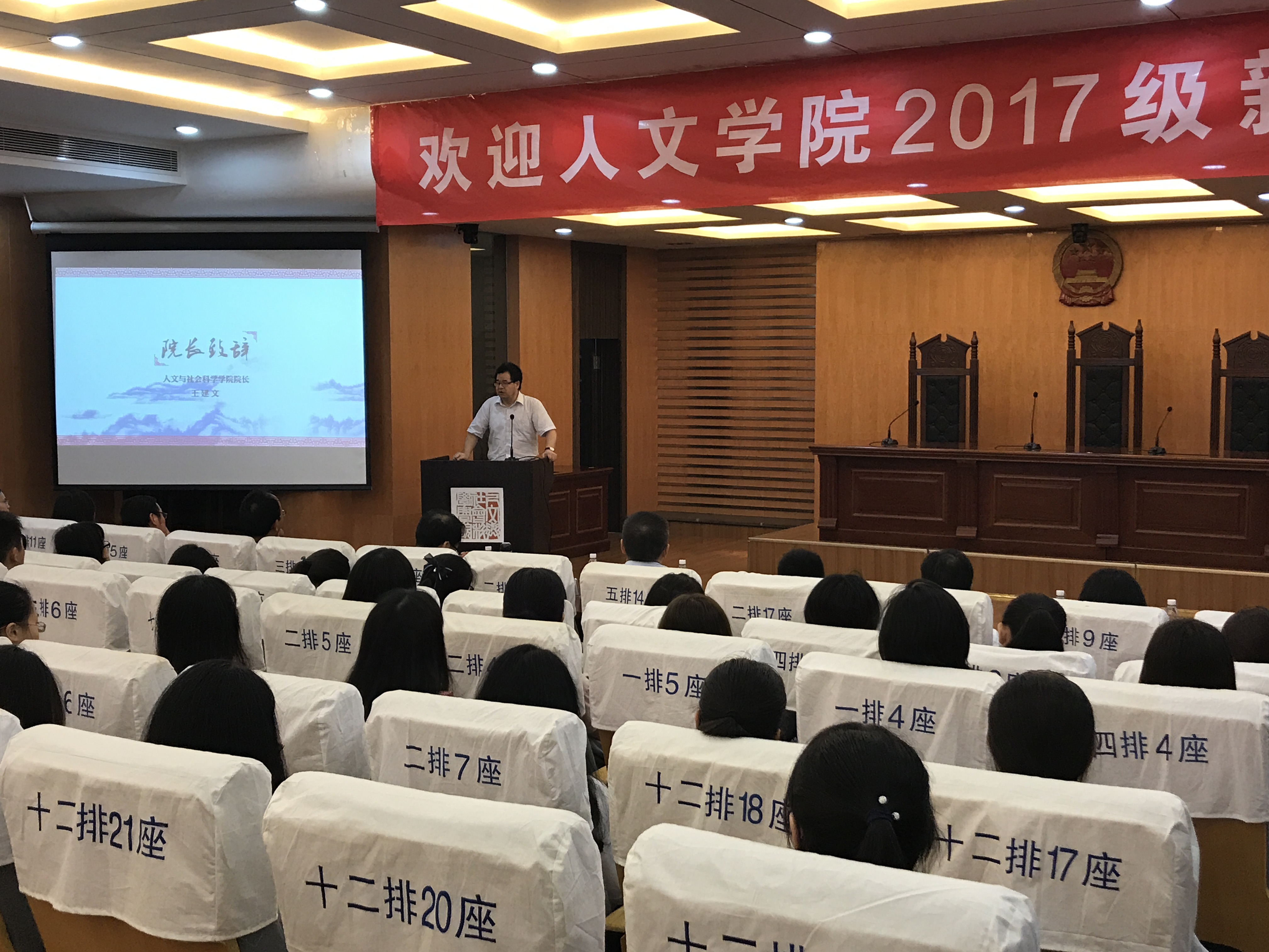 9月4日下午两点,百家乐官网 2017级新生见面会于人文学院楼模拟法庭举行。全体学院领导、学科负责人、专业负责人、系主任、系书记和各班班主任、教师代表、学院行政、辅导员参加了本次见面会,共同迎接来自五湖四海的2017级本科及研究生新生。
