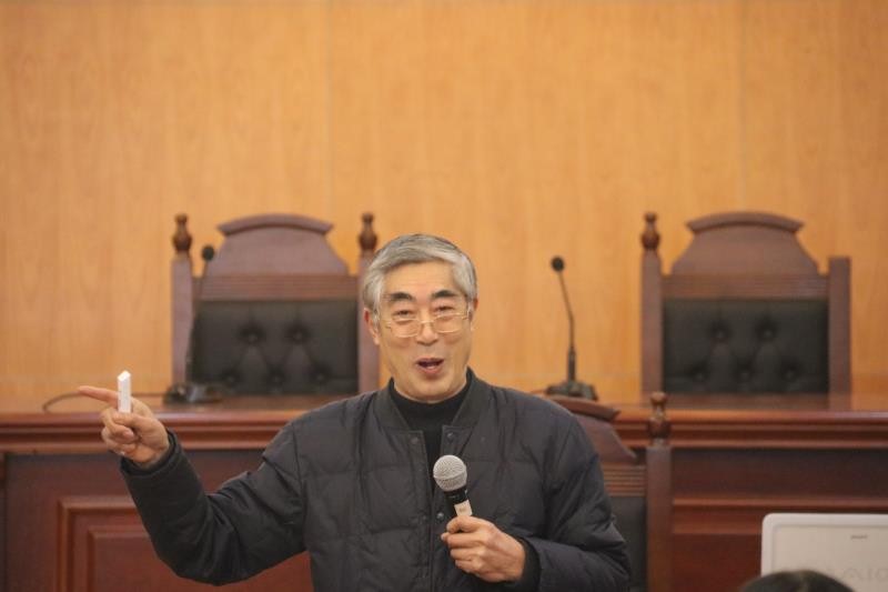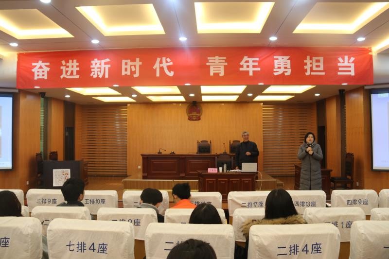 1月5日下午两点,为学习贯彻党的十九大精神,百家乐官网 邀请校关工委常务副主任丁荣茂老师在模拟法庭举行了“拥抱新时代青春谱华章”的主题党课,由学院党委副书记尹春苹主持,人文学院全体党员与低年级学生聆听了党课。