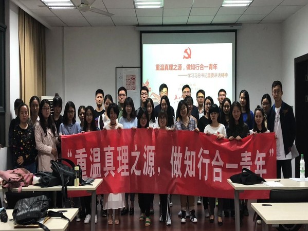 “马克思主义不仅深刻改变了世界,也深刻改变了中国”5月5日习近平总书记在纪念马克思诞辰200周年大会上发表重要讲话在师生间引起热烈讨论。为深入学习贯彻习总书记重要讲话精神,5月12日晚,人文学院2017级研究生第一、第二党支部在学院210教室联合组织开展“重温真理之源,做知行合一青年”学习习总书记重要讲话精神主题教育活动。活动由人文学院2017级研究生第二支部书记尚靖凯主持,支部全体党员、发展对象、入党积极分子参与活动。