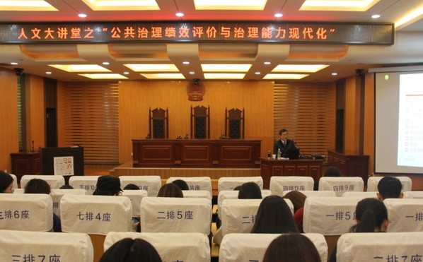 11月21日下午,人文大讲堂第四期在人文学院模拟法庭举办,特邀全国政府绩效管理研究会理事、全国政策科学研究会常务理事、副秘书长、南京邮电大学庄国波教授,以“公共治理绩效评价与治理能力现代化”为题,为人文学院师生带来一场别开生面的讲座。讲座由张勤教授主持,学院党委副书记尹春苹、学院全体辅导员与来自各年级同学一同聆听了讲座。