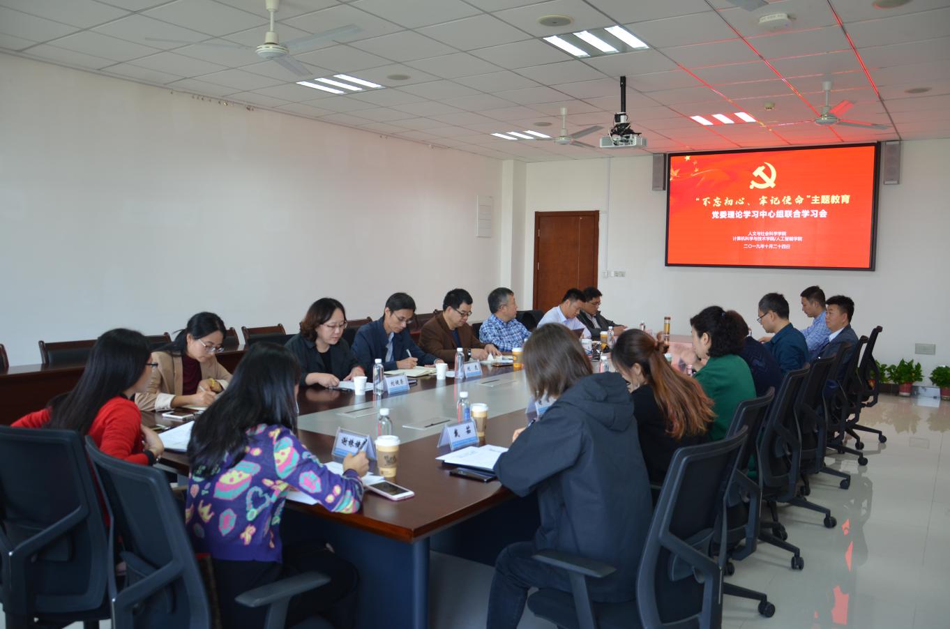 学院党委书记刘虎与计算机学院党委书记刘健荣结合两个学院的不同特色交流了自己的学习体会和下一步工作建议,并在总结中指出,要全面落实习总书记重要讲话精神,围绕立德树人根本任务,尽快拿出两院在课程思政、学科交叉融合等方面落地的具体举措并认真加以落实;要不断丰富学习内容和方式,促进主题教育更加扎实有效开展,助推学院快速健康发展。