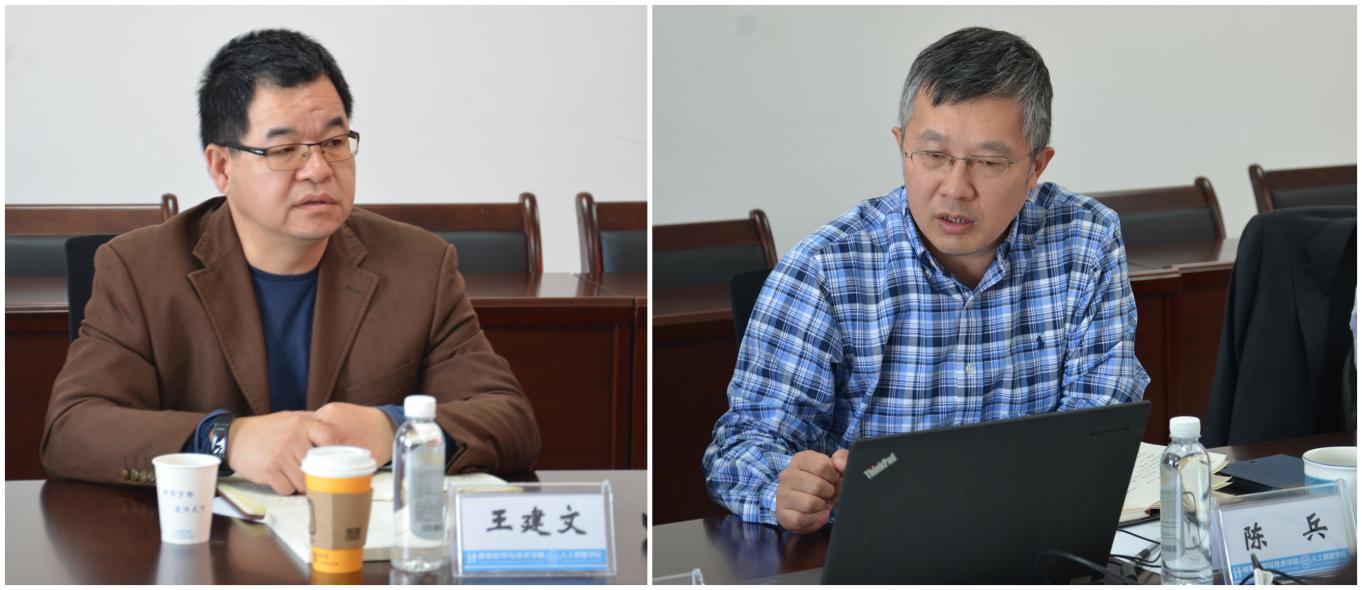 计算机学院院长陈兵首先领学习近平总书记在北京大学师生座谈会、全国教育大会、思政座谈会上的重要讲话精神,并结合教育部“六卓越一拔尖”计划、国家一流本科专业建设要求,围绕人才培养工作谈了自己的思考和体会。他认为习近平总书记关于教育的重要论述思想深刻、内涵丰富,并始终贯穿一个鲜明主题就是“培养什么人、怎样培养人、为谁培养人”这一根本问题。随后,他结合工程教育专业认证及学校人才培养目标,就两个学院如何在工程人才的责任感和素养培养上将课程思政落地,如何在计算机类专业课程与工程伦理、法律法规交叉融合方面提出了建议。