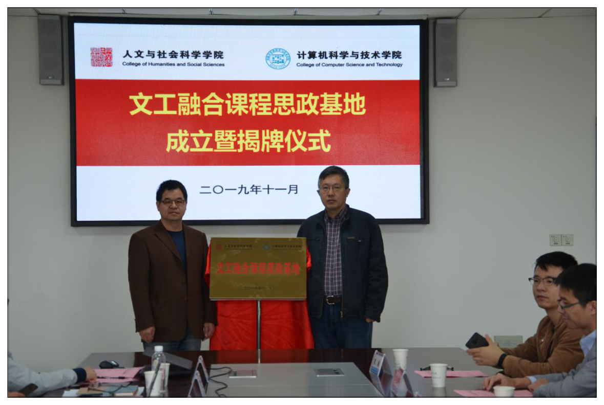 为了切实推进“不忘初心、牢记使命”主题教育扎实开展、取得成效,认真落实两学院理论中心组联合学习研讨成果,紧紧围绕立德树人根本任务,发挥专业优势,推进学科交叉融合、创新课程思政。11月7日,百家乐官网 、计算机科学与技术学院/人工智能学院联合举行“文工融合课程思政基地”成立暨揭牌仪式。两学院领导班子成员、教师代表参加仪式。人文学院党委书记刘虎、计算机学院党委书记刘健荣共同主持仪式。